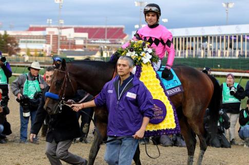 Cuando Game Winner (USA) llegó a Churchill Downs Kentucky el pasado año a participar en el Breeders’ Cup Juvenile, lo hizo en calidad de favorito en las apuestas. Había ganado su debut y sus primeros dos clásicos como dosañero, ambos de grado uno. El primero de ellos fué el Del Mar Futurity (GI) a 1,400 metros con Mario Gutierrez derrotando a Roadster (USA). Para su tercera salida, compitió en el American Pharoah Stakes (GI) ganando despegándose por más de cuatro cuerpos en distancia de 1,700 metros. Es por eso que el entrenado por Bob Baffert era sin duda el caballo a vencer en el Juvenile 2018. Con Joel Rosario, el hijo de Candy Ride (ARG) no defraudó. Corriendo despegado del riel en toda la vuelta, tuvo que batallar fuerte para alcanzar a Knicks Go (USA) y conservar su invicto en cuatro presentaciones.