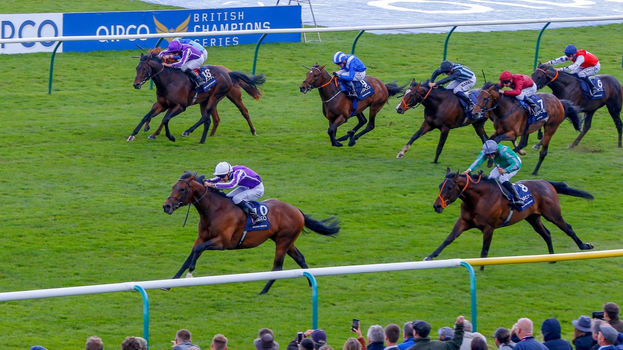 Inglaterra 🇬🇧 : Magna Grecia (IRE) obtuvo el triunfo en el QIPCO 2000 Guineas demostrando que actualmente es el mejor millero de su generación. Entrenado por Aidan O’Brien, Magna Grecia le brindó su décimo 2000 Guineas y su tercero de manera consecutiva. Conducido por Donnacha O’Brien en la parte del público, Magna Grecia pasó a dominar en el último furlong para su tercer triunfo de cuatro salidas.