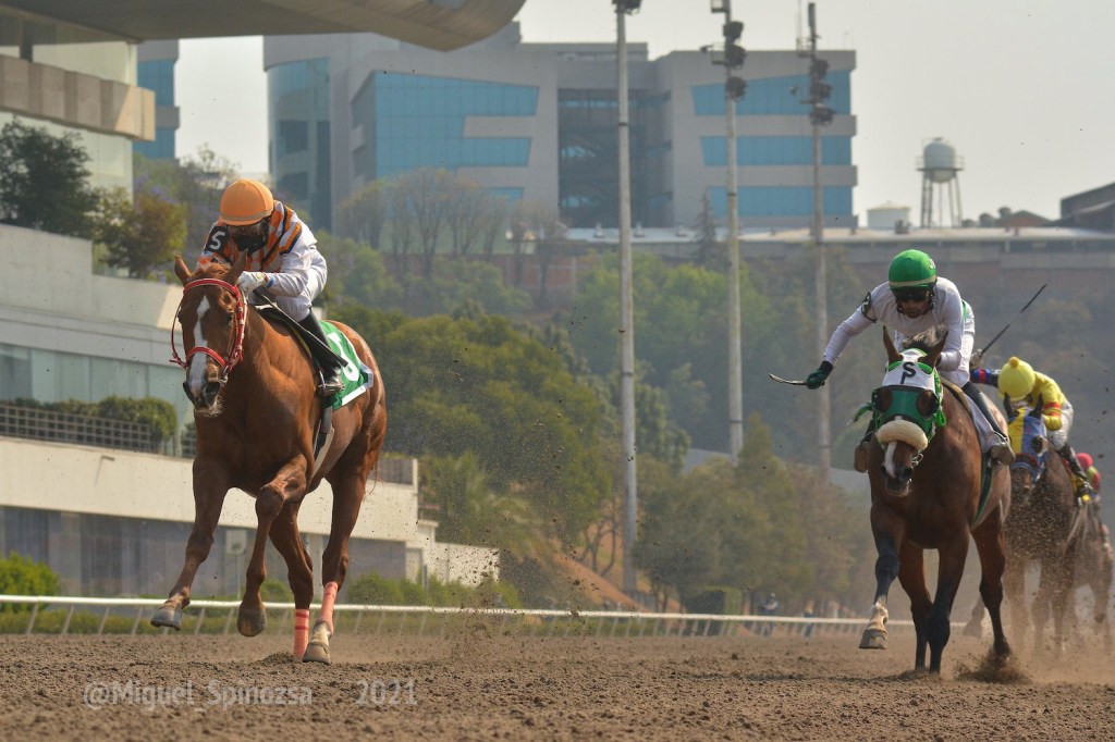 Por: Juan Carlos Velázquez – La poderosa Harrods (MEX) de Cuadra San Isidro no brilló en el Futurity Mexicano de este 27 de marzo y concluyó la competencia en quinto lugar. La que se engrandeció fue la potranca Hasta Pronto (MEX) de Cuadra San Antonio, que guiada por Javier Matías Barajas tuvo una carrera perfecta pues se fue en punta desde el inicio, y aunque la presionaron en la recta final, aguantó para obtener su primer triunfo clasiquero.