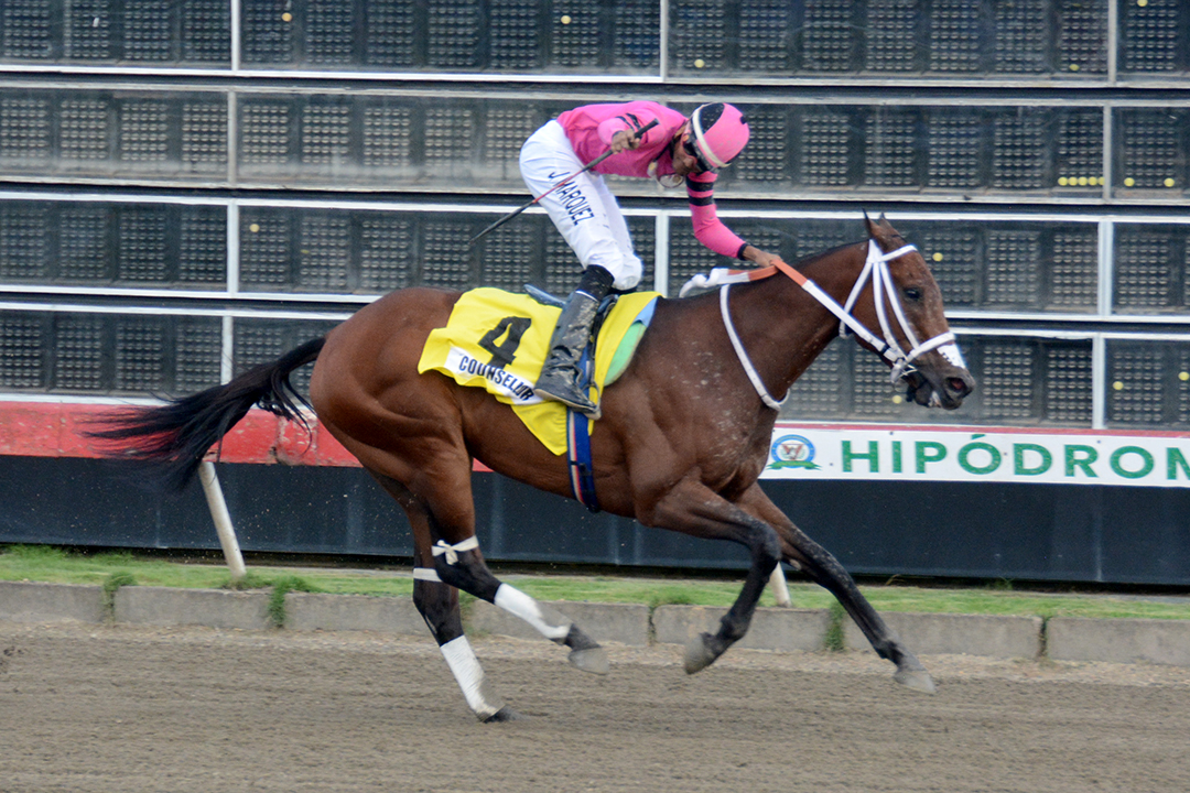 El caballo Counsellor (DOM) con José Rojas dominó el Clásico Restauración a ritmo de vá solo en el Hipódromo V Centenario en República Dominicana. Counsellor es un cincoañero hijo de Codasco (USA) en Puerta de Alcalá (DOM) por El Carbayón (DOM) criado por Rafael Cabral Wagner. Es hermano completo del triple coronado dominicano de 2019 Cadeau de Alcalá (DOM).