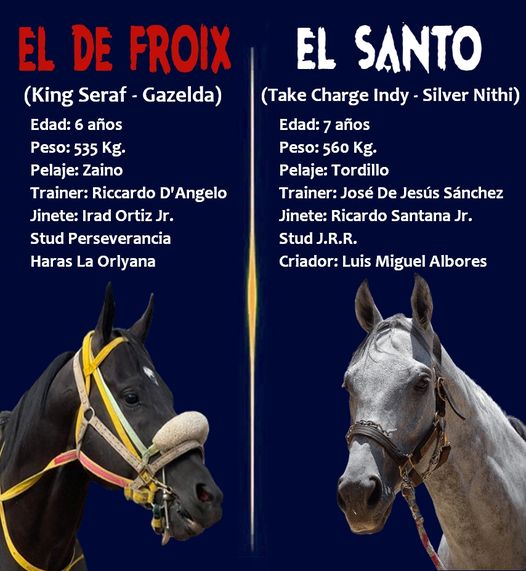 El domingo 10 de diciembre se enfrentarán, por tercera ocasión, dos de los mejores purasangres que realizan campaña en nuestra región: El De Froix (VEN) vs. El Santo (MEX).